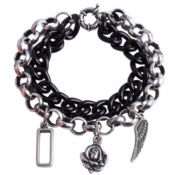 Męska bransoletka z łańcuchów typu rolo i pancerka z przywieszkami. Bransoletka występuje w dwóch długościach 22 cm.