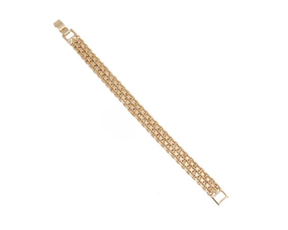 Bransoletka pozłacana typu bismark, wykonana z ogniwek o łącznej szerokości 1,0 cm. Długość bransoletki 18,0 cm. Waga bransoletki 20,0 g.