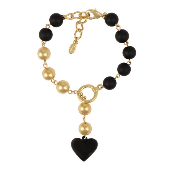 Pozłacana bransoletka z onyksów z czarnym sercem. Długość bransoletki 19 cm + 4 cm. Bransoletka regulowana