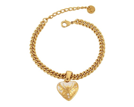 Pozłacana bransoletka z ręcznie malowanym na biało ozdobnym sercem.