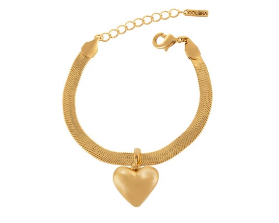 Pozłacana bransoletka z pękatym serduszkiem. Długość bransoletki 18 cm + 4 cm przedłużki. Szerokość łańcuszka 0,6 cm. Wymiary serduszka 2 cm/ 2 cm. Waga naszyjnika 15 g.
