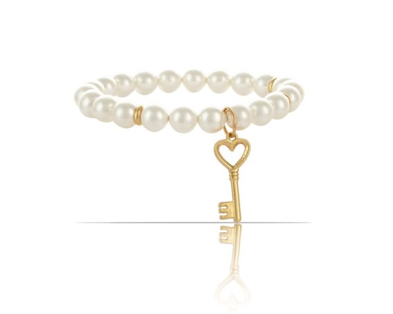 Pozłacana bransoletka z perełek z kluczykiem. Bransoletka na gumce.