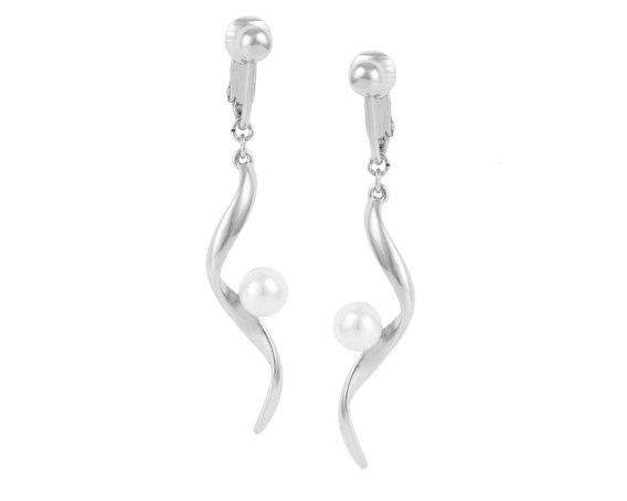 Długie klipsy z perełką. Długość 4,9cm, szerokość 0,8cm. Klipsy posrebrzane.