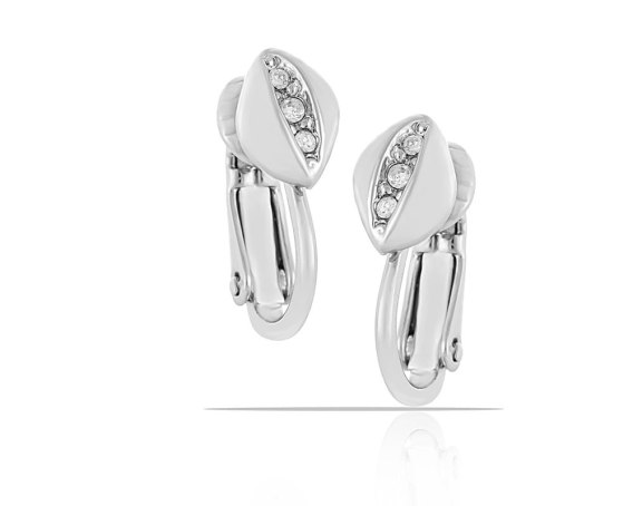 Posrebrzane klipsy z kryształkami Preciosa to doskonałe rozwiązanie dla kobiet, które nie noszą kolczyków. Wielkość klipsa 2 cm x 0,5 cm.