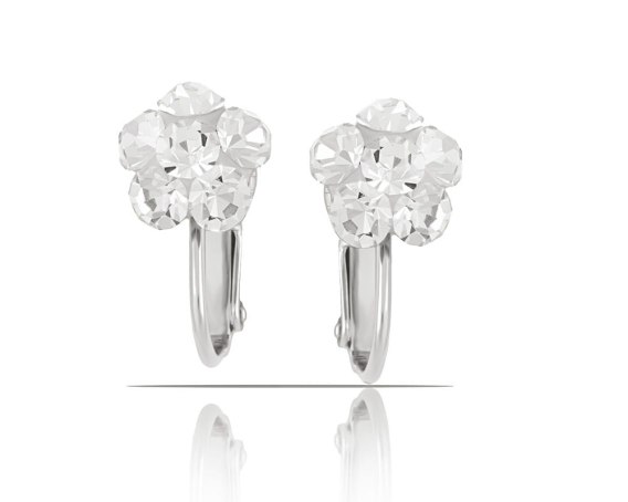 Posrebrzane klipsy z kryształkami Preciosa to doskonałe rozwiązanie dla kobiet, które nie noszą kolczyków. Długość klipsa 1,7cm, szerokość 1,1cm.