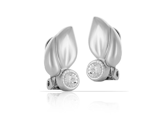 Posrebrzane klipsy z kryształkami Preciosa. Długość klipsa 1,7 cm, szerokość 1 cm.