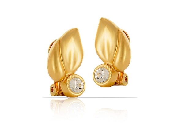 Pozłacane klipsy z kryształkami Preciosa.  Długość klipsa 1,7 cm, szerokość 1 cm.
