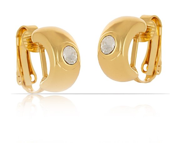 Pozłacane klipsy zdobione na środku kryształkami Preciosa.