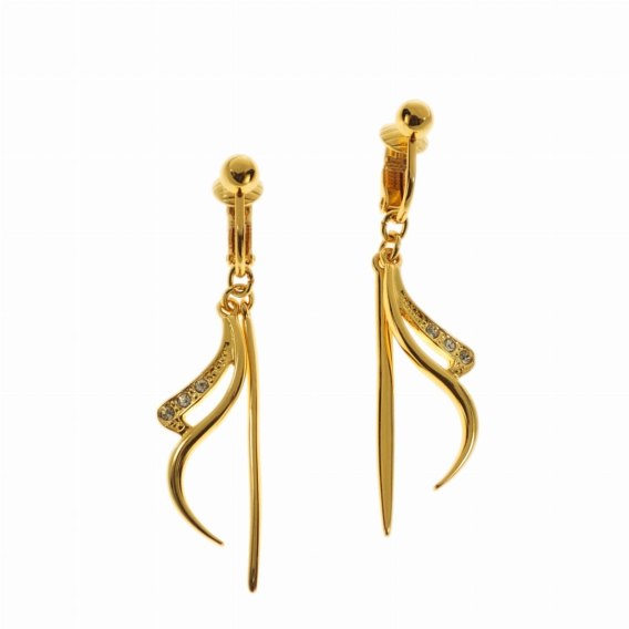 Klipsy to doskonałe rozwiązanie dla kobiet, które nie noszą kolczyków. Nowoczesny wzór klipsów z kryształkami Swarovskiego doskonale podkreśli Twoją osobowość. Długość 5cm, szerokość 0,9cm. Klipsy pozłacane.