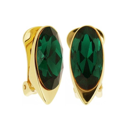 Klipsy to doskonałe rozwiązanie dla kobiet, które nie noszą kolczyków. Długość klipsa 2,2cm szerokość 1cm. Klipsy pozłacane z zielonym kryształem.