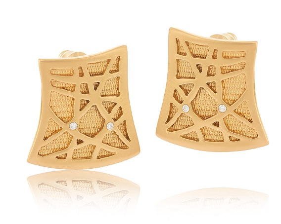 Pozłacane kolczyki ażurowe na sztyfcie, zdobione kryształkami Preciosa. Wymiary kolczyka 2 cm/ 2 cm.