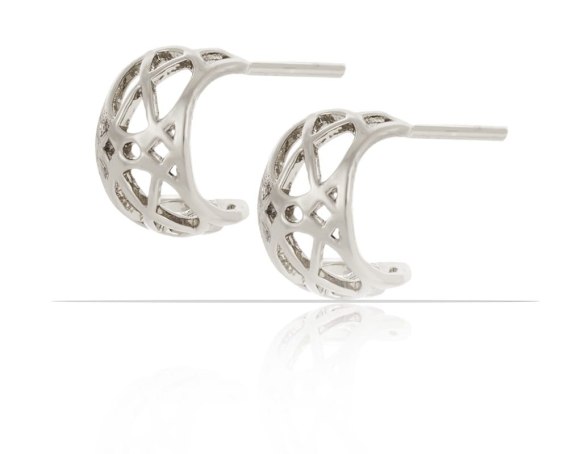 Posrebrzane okrągłe, ażurowe kolczyki na sztyfcie.