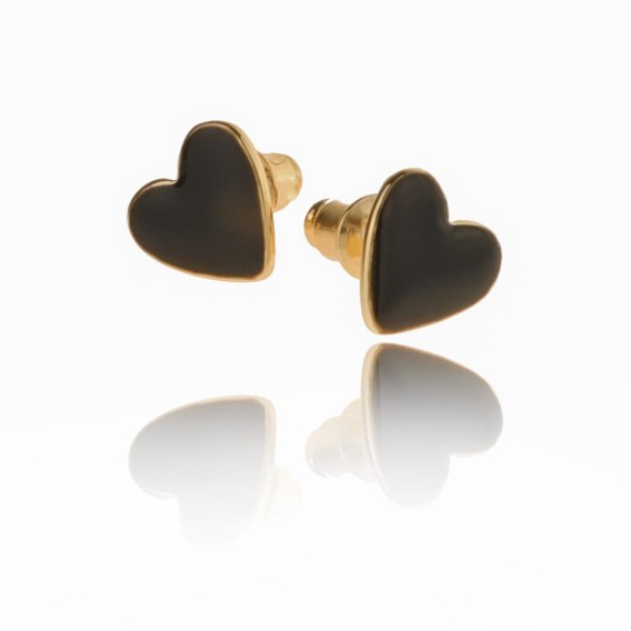 Pozłacane kolczyki na sztyfcie, ręcznie malowane na czarno serce. Wielkość serduszka ok.1 cm