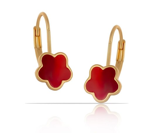 Pozłacane kolczyki kwiatuszki dla dzieci, ręcznie malowane czerwoną emalią to urocze i kolorowe ozdoby, które z pewnością przyciągną uwagę najmłodszych miłośniczek biżuterii.
