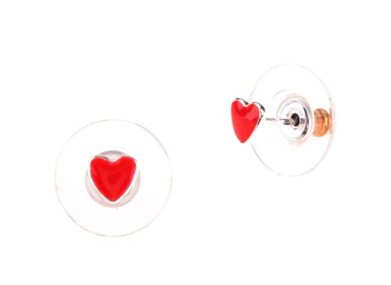 Urocze kolczyki czerwone serce. Kolczyki o długości 0,5cm, szerokość 0,5cm. Kolczyki posrebrzane.