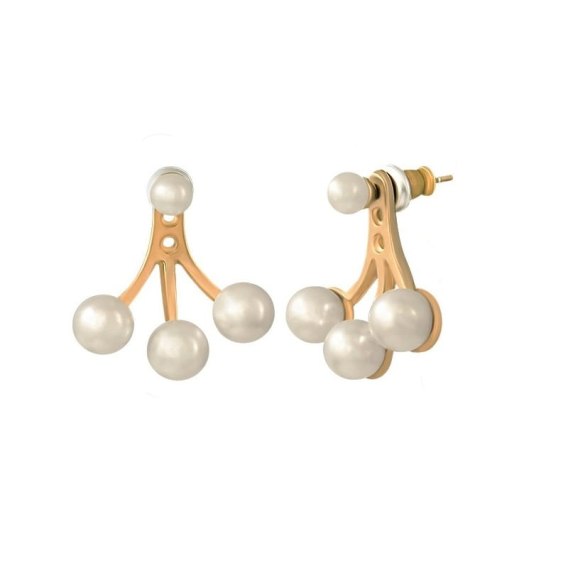 Kolczyki z syntetycznymi perełkami z dodatkowym elementem, który można nosić z przodu lub z tyłu ucha. Prezentują się pięknie zarówno do stylizacji na każdy dzień oraz na specjalne okazje.