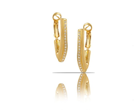 Pozłacane klasyczne kolczyki wysadzane kryształkami Preciosa. Długość kolczyka 3 cm.