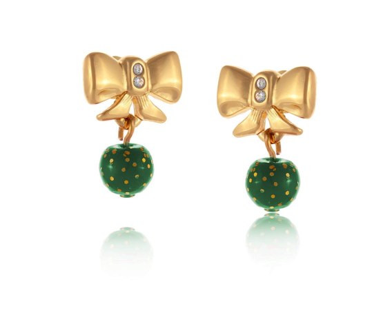 Kolczyki kokardki z zielonym koralikiem, z brokatem (P24/ZIM/03/2AU)