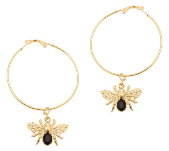 Kolczyki koła o średnicy 5cm. Mucha ozdobiona kryształem w czarnym kolorze. Kolczyki pozłacane.