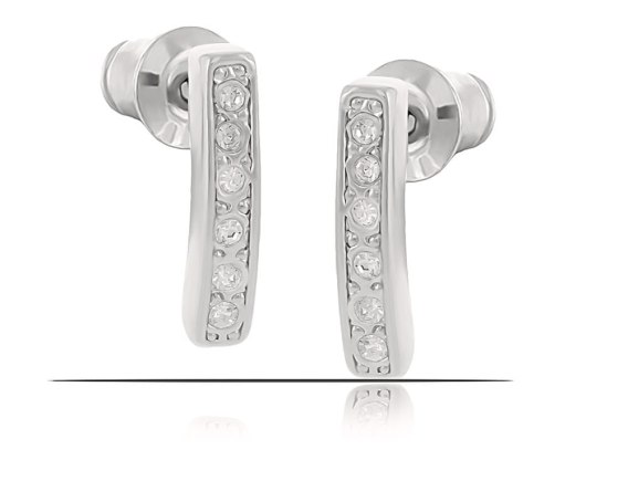 Kobiece i eleganckie, posrebrzane kolczyki z kryształami Preciosa idealnie pasują do sukienek, kombinezonów i garniturów. Wielkość kolczyka ok 2 cm x 0,3 cm.