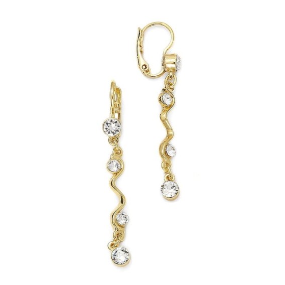 Długie kolczyki z kryształami Preciosa pasują zarówno do uroczystej stylizacji jak i codziennego looku. Długość kolczyka 5cm. Szerokość kolczyka 0,5cm. Kolczyki pozłacane.