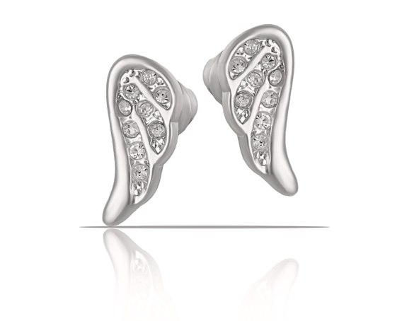 Posrebrzane kolczyki z kryształkami Preciosa. Biżuteria z motywem skrzydeł to nie tylko doskonały pomysł na prezent dla każdej kobiety, ale również idealne uzupełnienie wielu stylizacji.