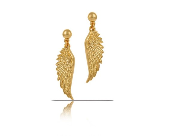 Pozłacane kolczyki ze skrzydłami. Długość kolczyka 4,5 cm.