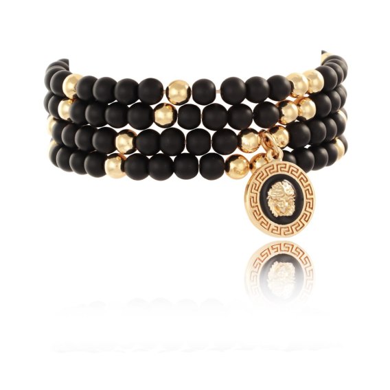 Pozłacany komplet bransoletek z onyksów, z ręcznie malowaną na czarno monetką.