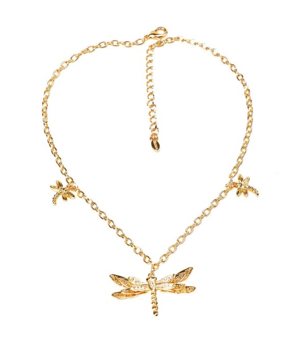Niezwykle kobiecy naszyjnik z motywem ważki, któremu elegancji nadają kryształy Preciosa. Długość naszyjnika wynosi 47 cm + przedłużka 8 cm. Wymiary ważki 4,5cm x 3cm.
