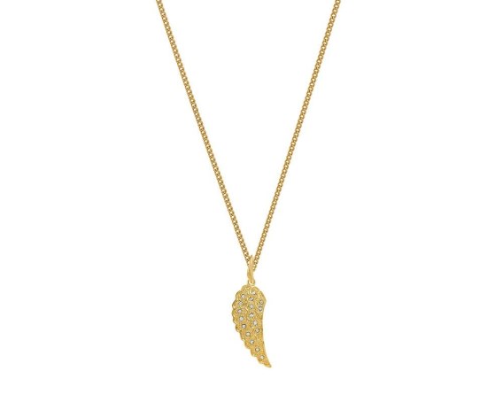 Biżuteria z motywem skrzydeł to nie tylko doskonały pomysł na prezent dla każdej kobiety, ale także idealne uzupełnienie wielu stylizacji Naszyjnik ze skrzydłem. Naszyjnik pozłacany z kryształami Preciosa.