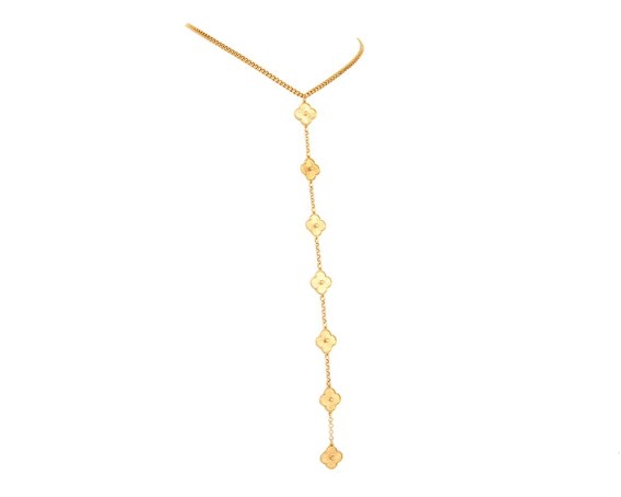 Pozłacany naszyjnik przód/tył z kwiatków. Długość naszyjnika 40 cm. Długość przodu ok 24 cm, długość tyłu ok 5,5 cm.
