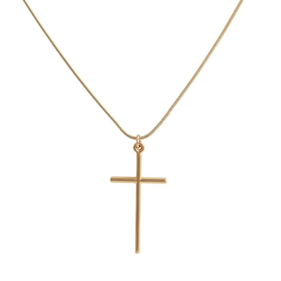 Delikatny naszyjnik z krzyżem 3,5x1,5 cm. Długość łańcuszka wynosi 55 cm.