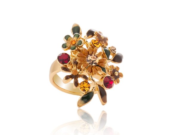 Pozłacany pierścionek z motywem kwiatuszków to idealny dodatek dla miłośniczek subtelnej, ale wyrazistej biżuterii. Ręcznie zdobiony kolorową emalią i ozdobiony kryształkami Preciosa, pierścionek emanuje delikatnością i blaskiem, podkreślając urok każdej stylizacji. Dzięki regulowanej konstrukcji, pierścionek idealnie dopasowuje się do każdego rozmiaru palca, zapewniając komfort noszenia i uniwersalność. Motyw kwiatuszków nadaje mu lekkości i dziewczęcego wdzięku, czyniąc go idealnym wyborem na specjalne okazje.