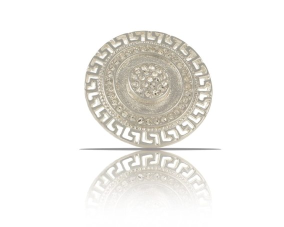 Regulowany, posrebrzany pierścionek z kryształkami Preciosa, z drogą grecką. Średnica elementu ozdobnego ok 3cm