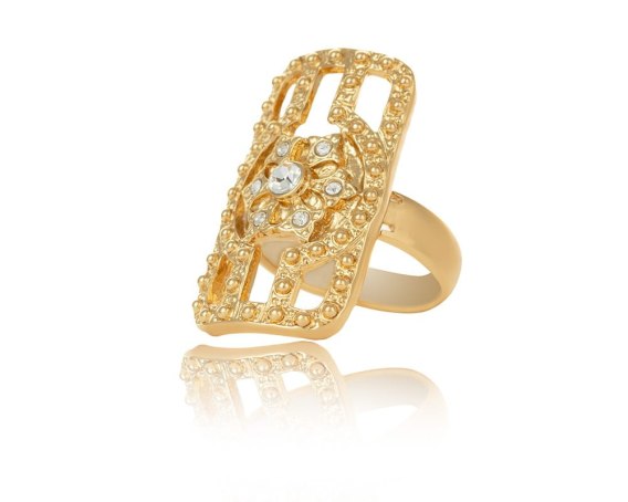 Pozłacany, regulowany pierścionek z kryształkami Preciosa to prawdziwa perełka w świecie biżuterii. Wykonany z najwyższej jakości materiałów, ten elegancki i ekskluzywny pierścień zachwyci Cię swoim blaskiem i finezją. Wymiary pierścionka ok 1,7 cm/ 3 cm.