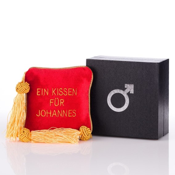 Napis na produkcie: Ein Kissen für Johannes. Produkt w niemieckiej wersji językowej.