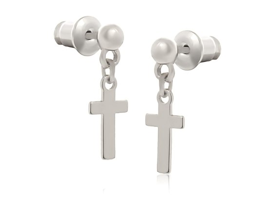 Posrebrzane kolczyki wiszące krzyżyki (P14732/1AG)